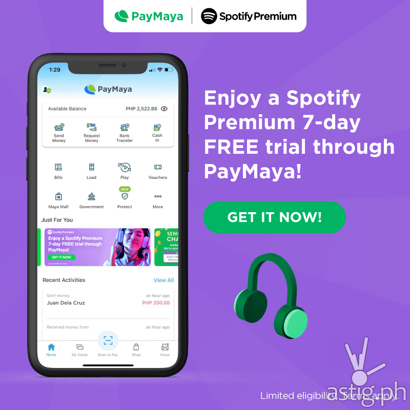 As a special launch offer, PayMaya users can access a 7-day Spotify Premium free trial on the PayMaya mobile app. To subscribe to Spotify Premium on PayMaya: