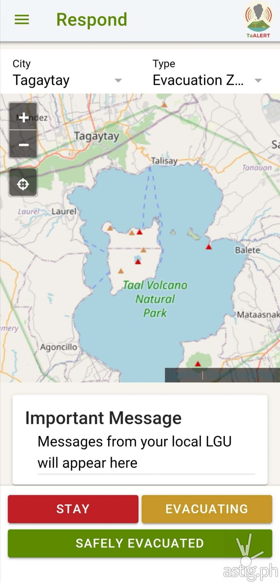 TaALERT is equipped with a real-time updated map that shows the user’s location relative to confirmed volcanic activity. Reflecting Phivolcs’ published hazard zones, the in-app map allows users to see how far they are from a potential hazard, keeping users informed on what is happening at the moment, and helping them decide on whether evacuation is necessary.