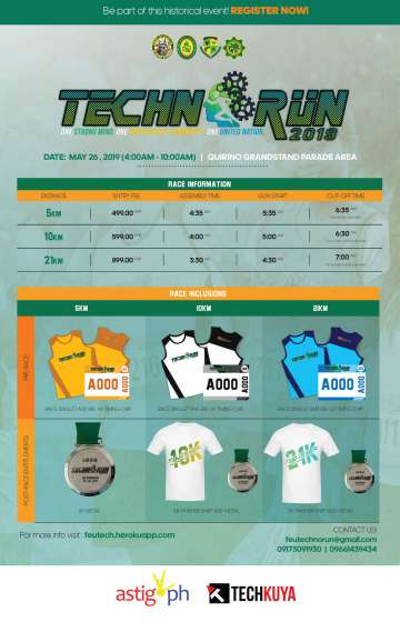 FEU Student Coordinating Council (SCC) presents “TECHNORUN 2019: One STRONG MIND, One PROGRESSIVE COMMUNITY, One UNITED NATION,” a fun run for a cause to be...