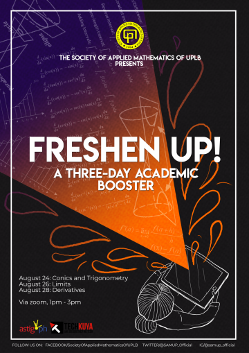 This coming August 24, 26 and 28, the Society of Applied Mathematics of UPLB will be conducting a free academic refresher course open for all...