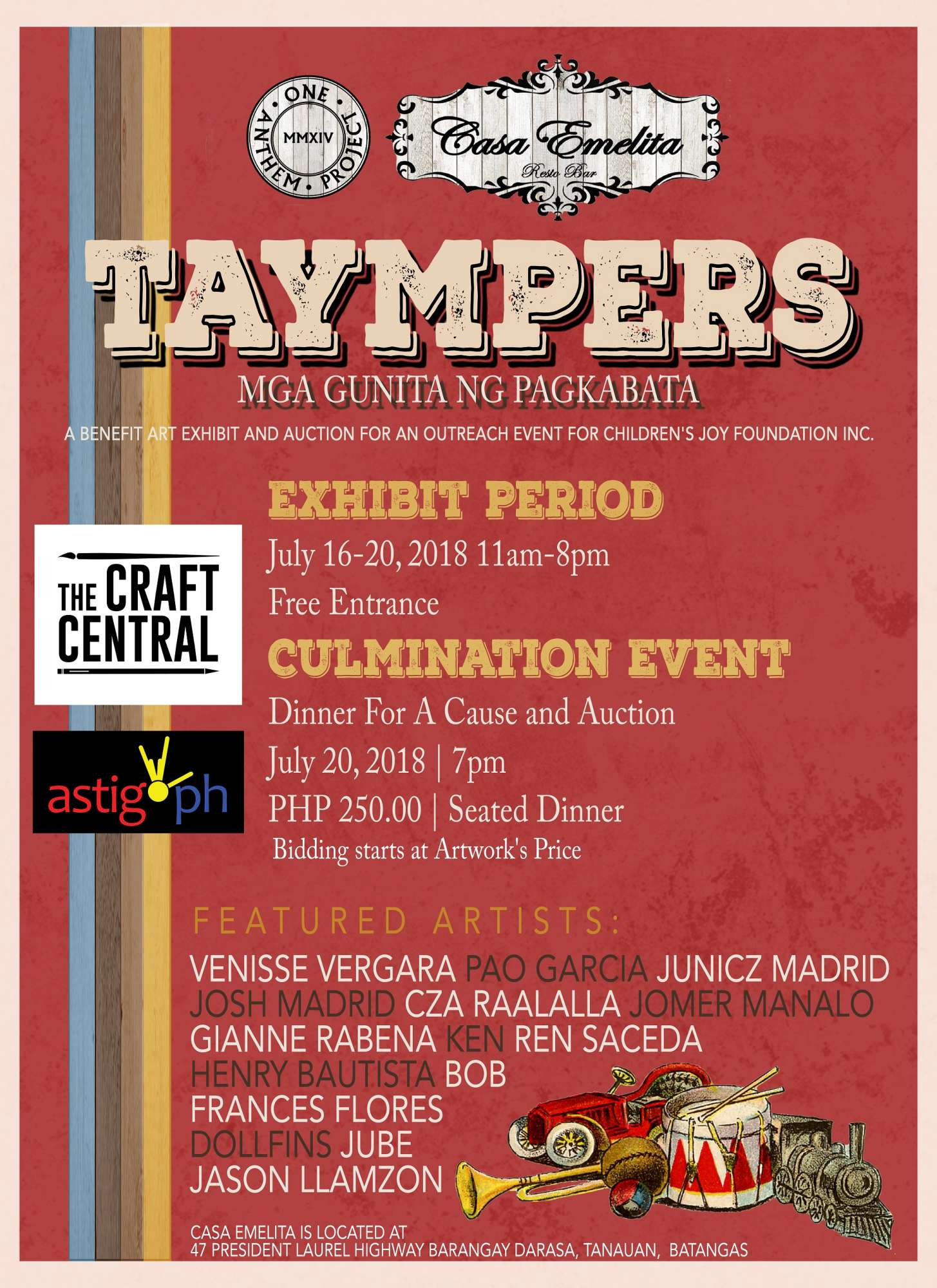 What: Taympers: Mga Gunita ng Pagkabata – A benefit art exhibit and auction for Children’s Joy Foundation Inc.