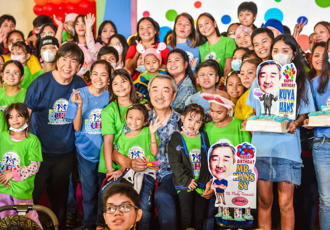 CHILD Haus founder ‘Mader’ Ricky Reyes and SM Prime Holdings Inc. Chairman of the Executive Committee Hans Sy (center) celebrate the institution’s 21st anniversary with the CHILD Haus beneficiaries.