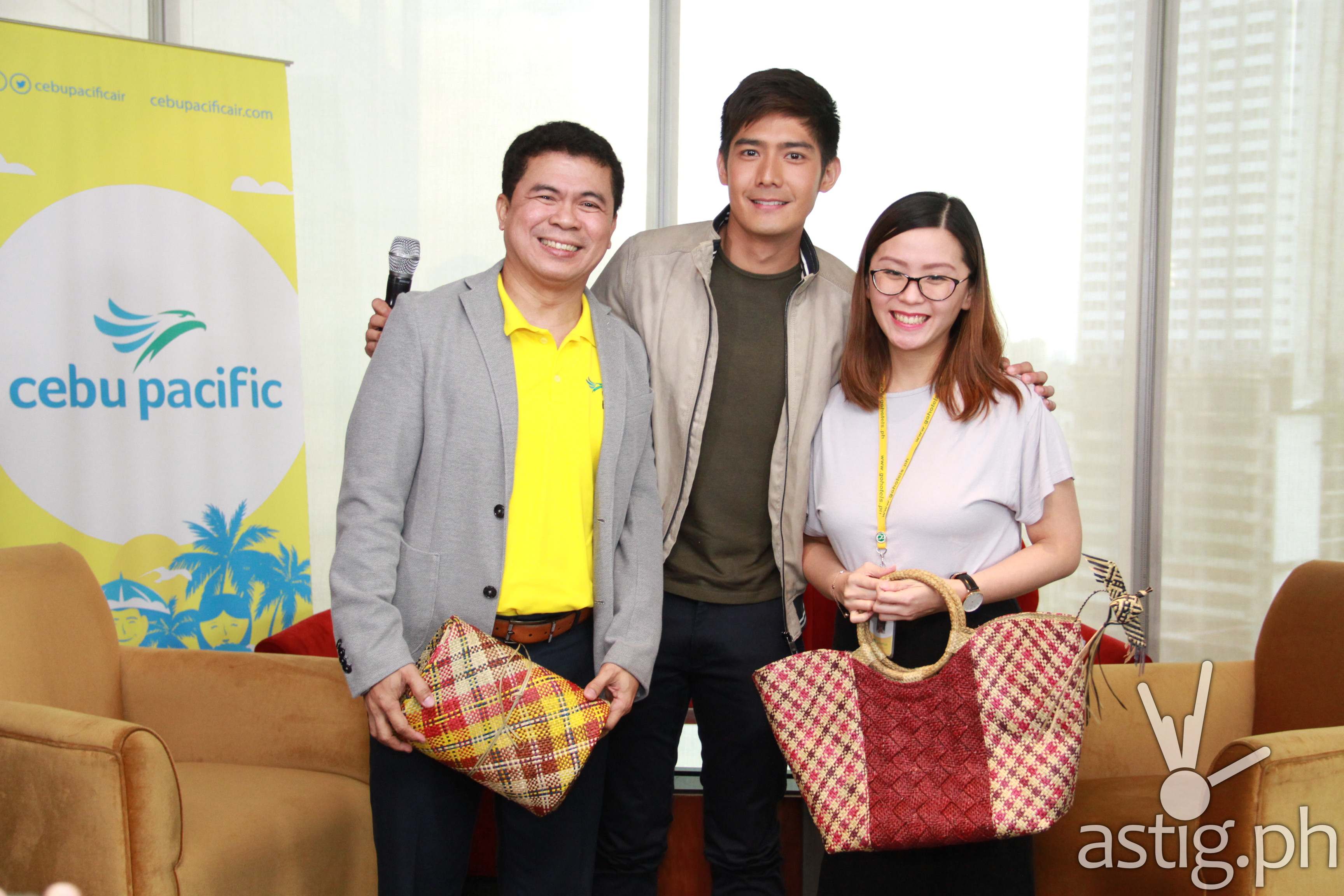 From L-R: Atty JR Mantaring, Vice President for Corporate Affairs of Cebu Pacific, Robi -, Lakwatsero host, Jacquelyn Florence Lim, Asst. Marketing Manager, Robinsons Hotels & Resorts – Go Hotels