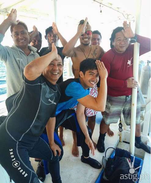 This is the signal when you see a shark underwater and I’m lucky cause I saw a lot in Malapascua! With me are some of the best divers who took care of me during the whole trip #Lakwatsero