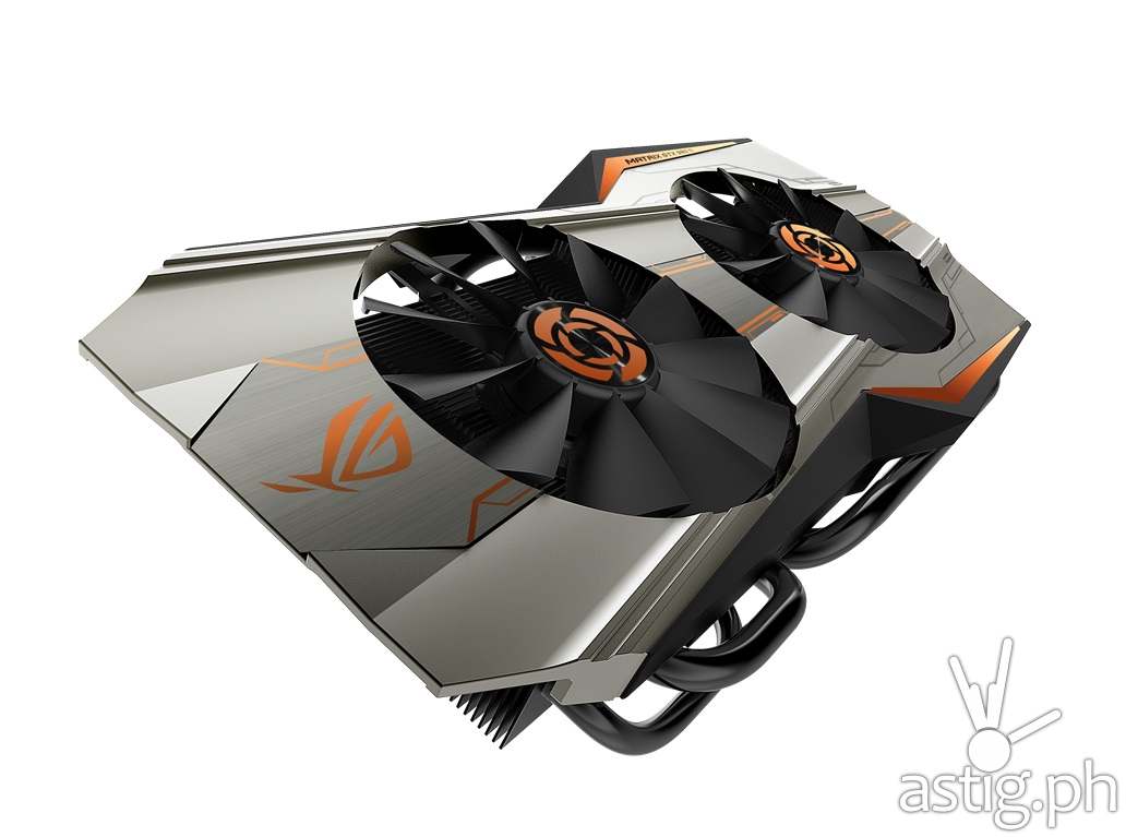 ROG Matrix GTX 980Ti Platinum gaming graphics card features DirectCU II with 10mm heat pipes for 25% cooler performance and three-times (3X) less noise than reference cards. Patented Wing-blade Fan technology maximizes airflow by delivering 105% more air pressure for more efficient cooling.