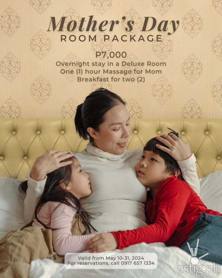For only P7,000, guests can treat their mothers to a well-deserved retreat, inclusive of a relaxing one-hour massage session, a buffet breakfast for two, and access to Rizal Park Hotel's facilities, allowing guests to unwind and create unforgettable memories with their loved ones.