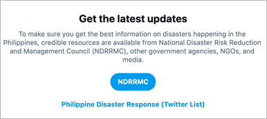 For a country subject to the annual and seasonal influences of monsoons and tropical hurricanes; natural disasters such as floods, volcanic eruption, and more; are highly prevalent in the Philippines. In an expansion of Twitter’s Search Prompt; which was specifically put in place for the public to find clear, credible information focusing on disaster preparedness and emergencies; Twitter has partnered with the National Disaster Risk Reduction and Management Council or NDRRMC (@NDRRMC_OpCen), the Philippine Red Cross (@philredcross), as well as other government agencies, NGOs and media to expand its efforts towards handling disaster situations.