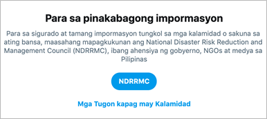 The search prompt is to amplify critical information and promote relief efforts either during or after disasters or emergencies with an objective to refer users to credible and reputable government agencies, NGOs and media providing updated information crisis response and disaster emergency. It is available on iOS, Android, and on mobile.twitter.com in Philippines; in both Tagalog and English languages.