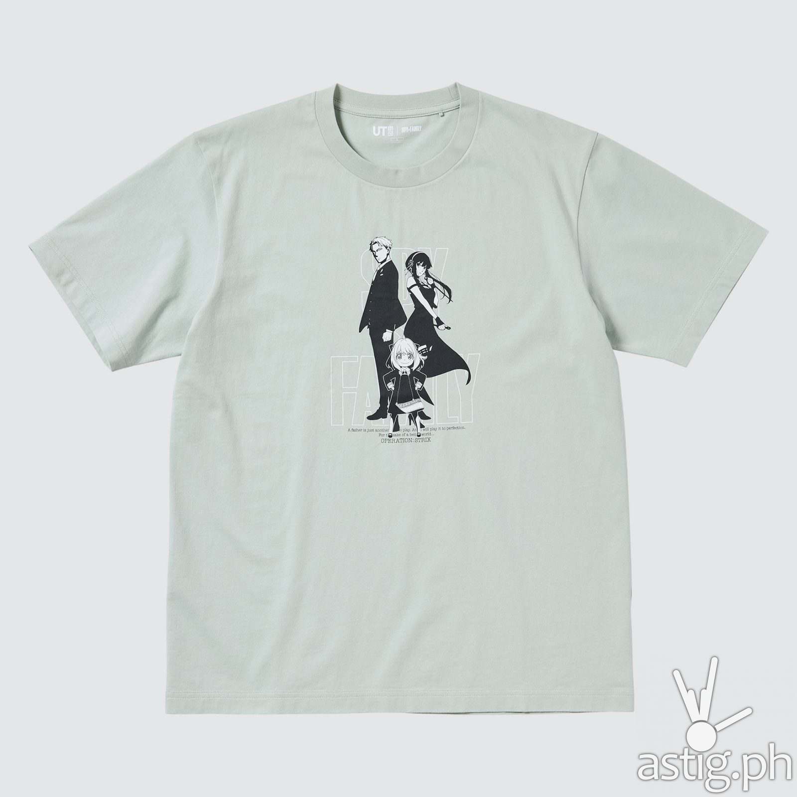 The UTs feature the distinctive logo and graphics of the SPY x FAMILY series, including main character and spy Loid Forger (code named Twilight) and two other members of a family he fabricated to carry out his mission. One is Anya Forger, a telepathic girl he adopted. The other is wife Yor Forger (nicknamed Thorn Princess) a professional assassin.