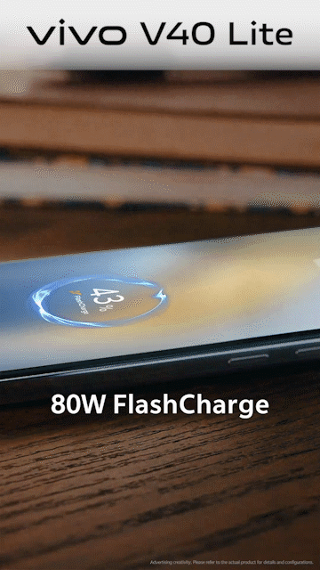 Available in both 4G and 5G variants, the vivo V40 Lite boasts an impressive 80W FlashCharge feature, setting a new standard for fast charging in its price range.
