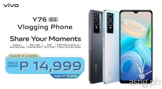 MANILA, Philippines – vivo Philippines announced a huge price cut on its 5G-ready vlogging smartphone. Save up to P2,000 as vivo Y76 5G now comes in a discounted price of 14,999 from its original price of P16,999.