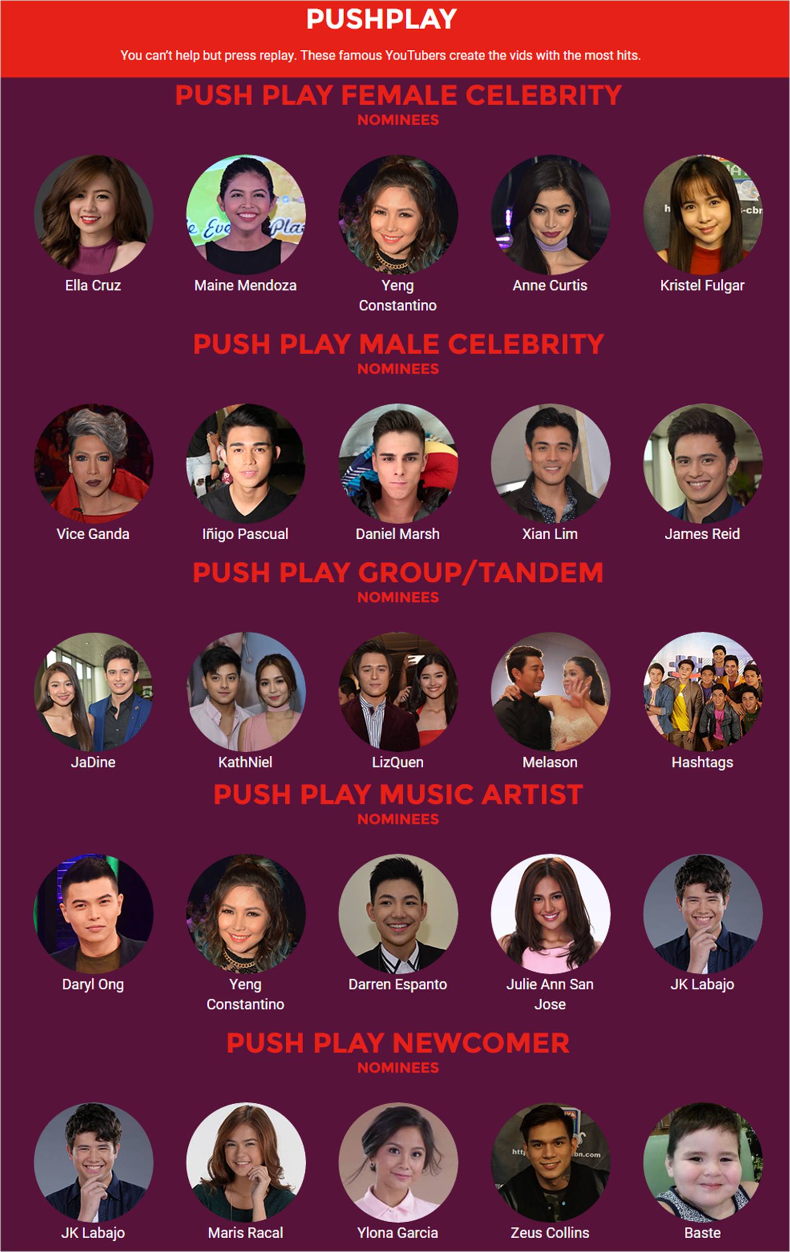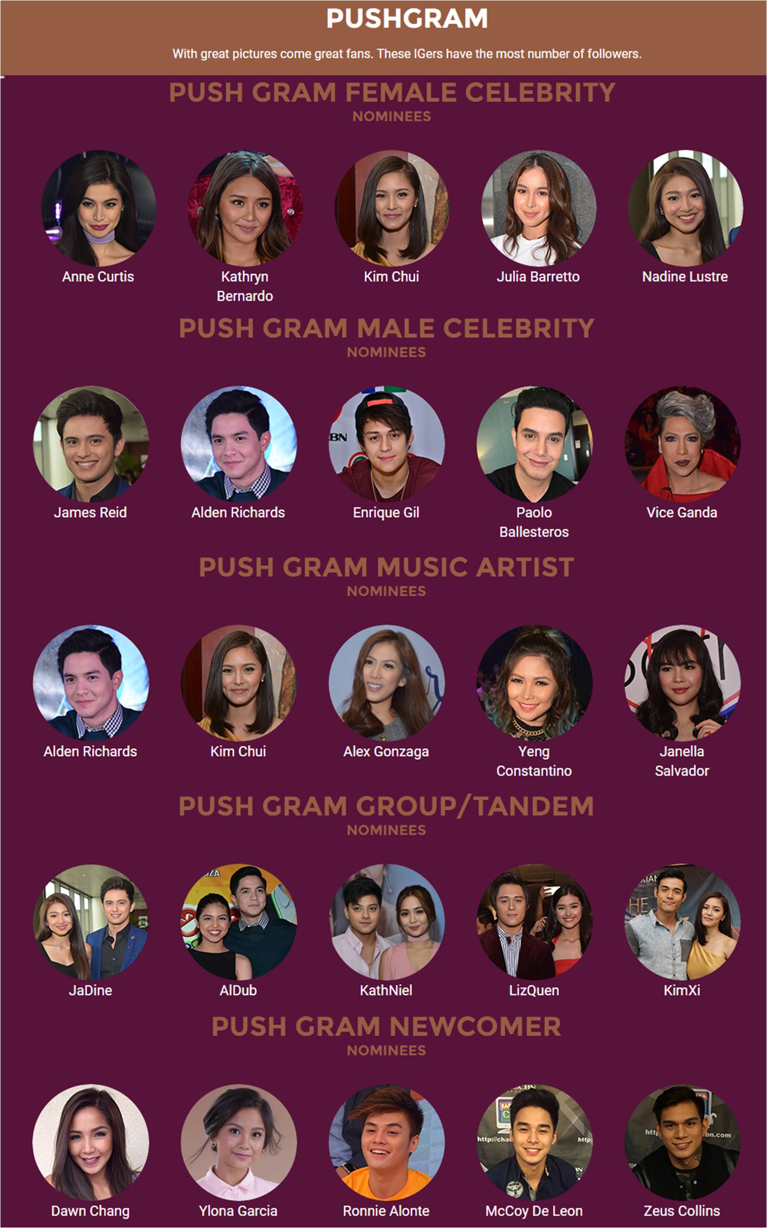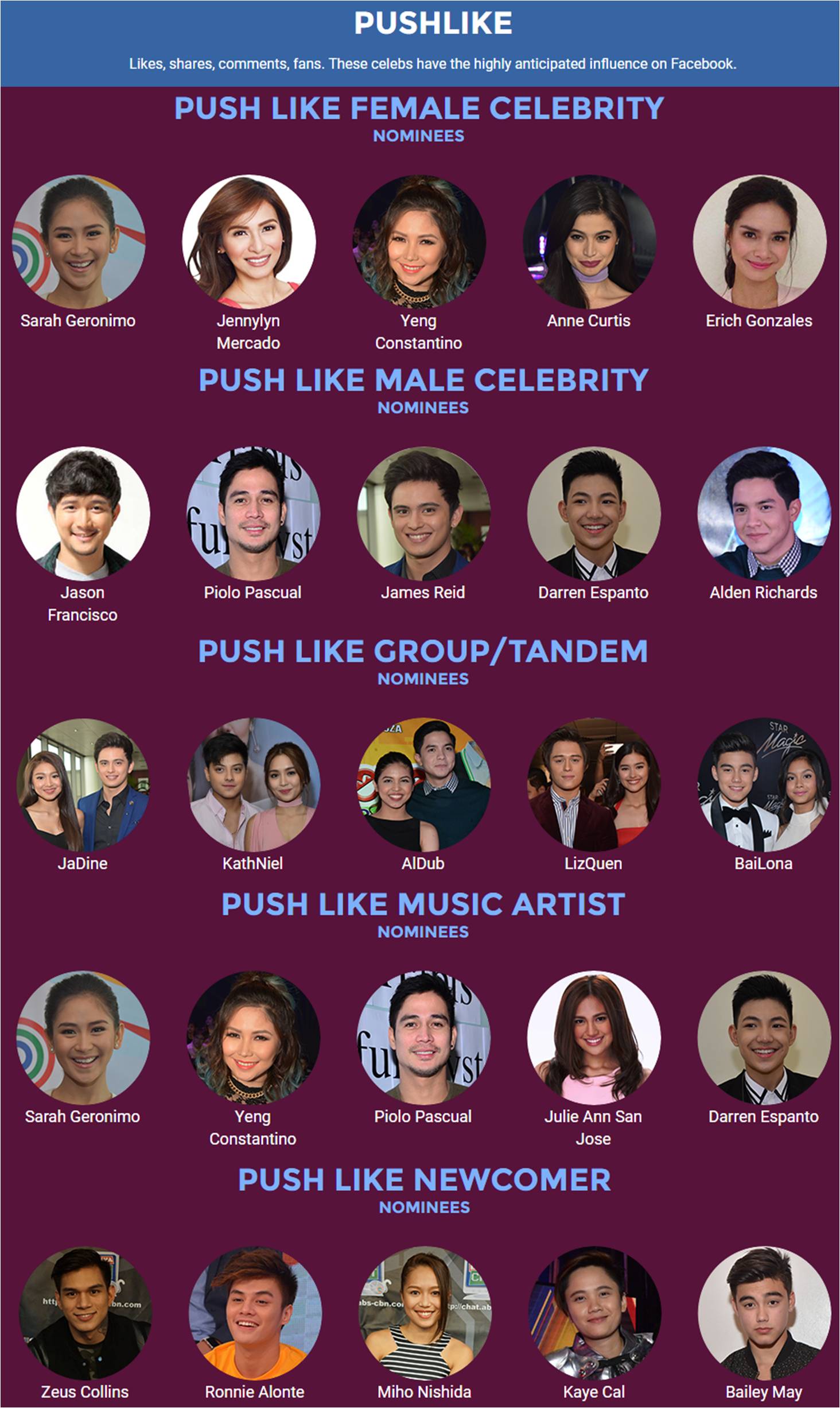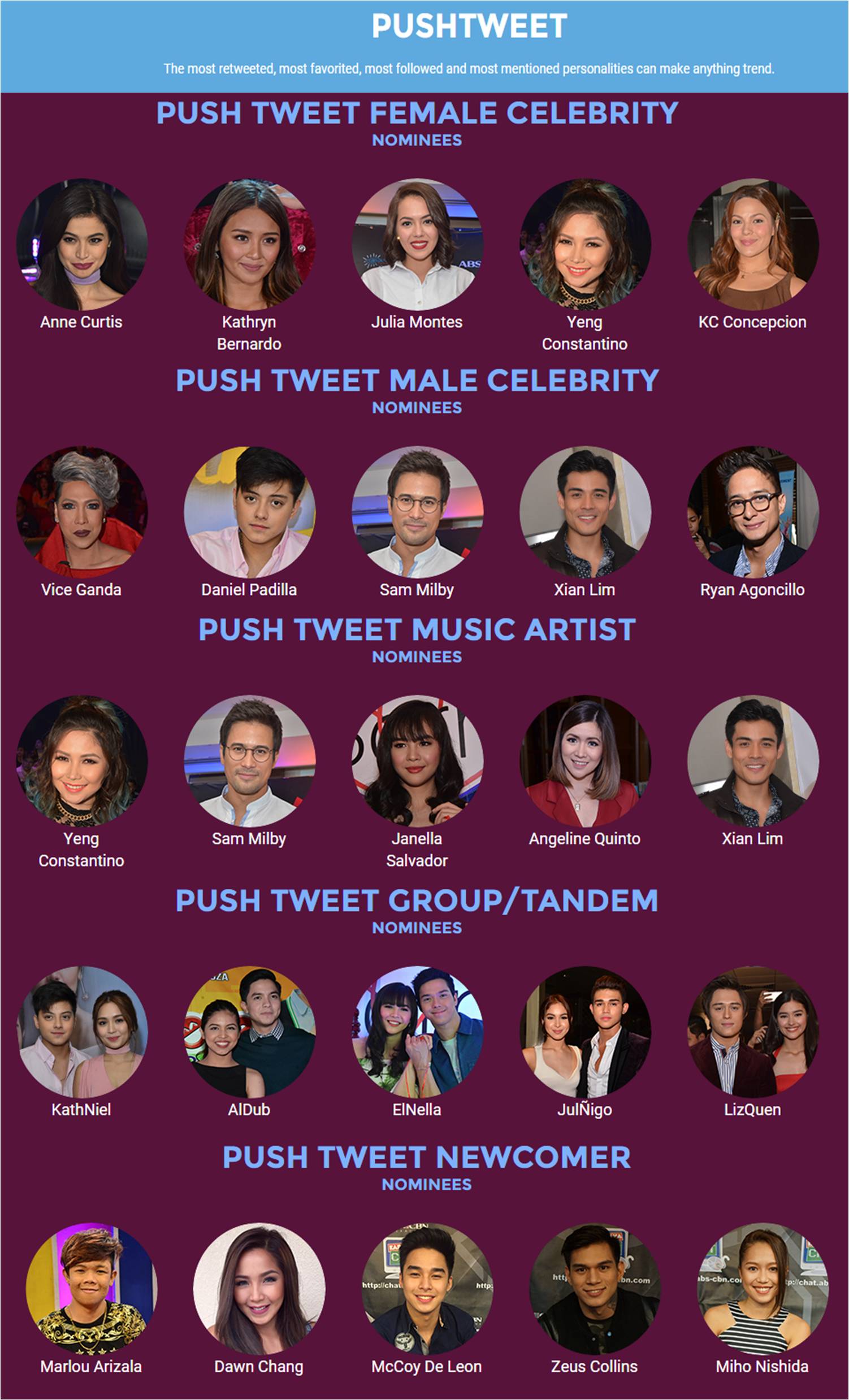 The Push Awards is now back on it’s 2nd year from the success of their experimental first leg last year. Push Awards honor those who push the limits of digital media. They applaud those who push ideas on digital and they congratulate those who push the right buttons online–celebrities and fans alike. Kathniel ( Kathryn Bernardo and Daniel Padilla) were big winners last year, find out who will dominate this year’s awarding. Through a Navi Scoring (Following, Engagement and Followers Reaction), celebrities who have a high influence became nominees for different categories.