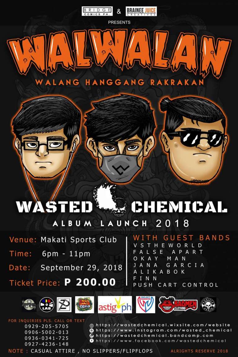 Wasted Chemical will be launching their debut album entitled Walwalan: Walang Hanggang Rakrakan on September 29 at the Makati Sports Club.