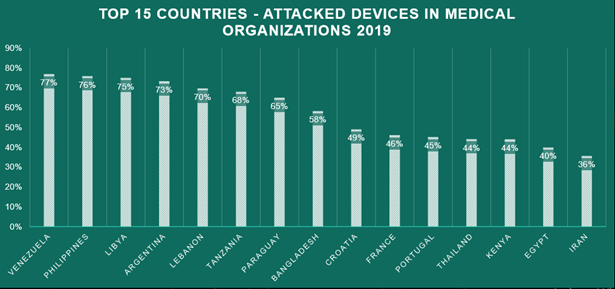 The numbers were derived after Kaspersky researchers divided the number of devices in medical organizations in the countries with Kaspersky solutions by the number of devices where malicious codes were detected. Medical devices include all servers, computers, mobiles and tablets, IoT gadgets, and hospital machines that are connected to the internet inside a healthcare facility.