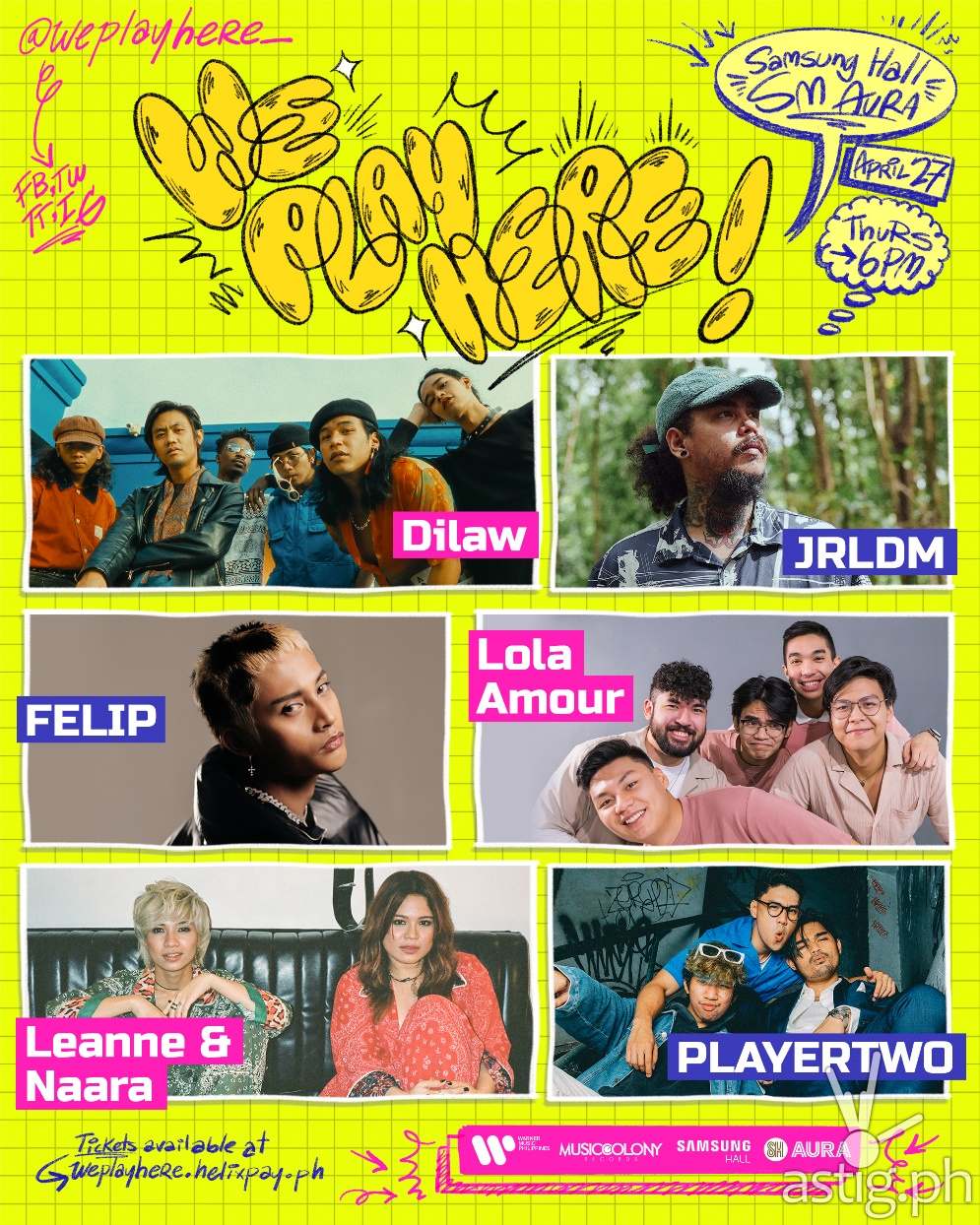 We Play Here kicks off this April 27, 6 PM, Thursday at the SM Aura Samsung Hall. Pre-sale tickets for the first installment of We Play Here are sold out, but regular tickets are still available at P950. You can purchase tickets online via https://weplayhere.helixpay.ph and follow @weplayhere_ for event updates, artist meet & greet activities, and merchandise announcements.