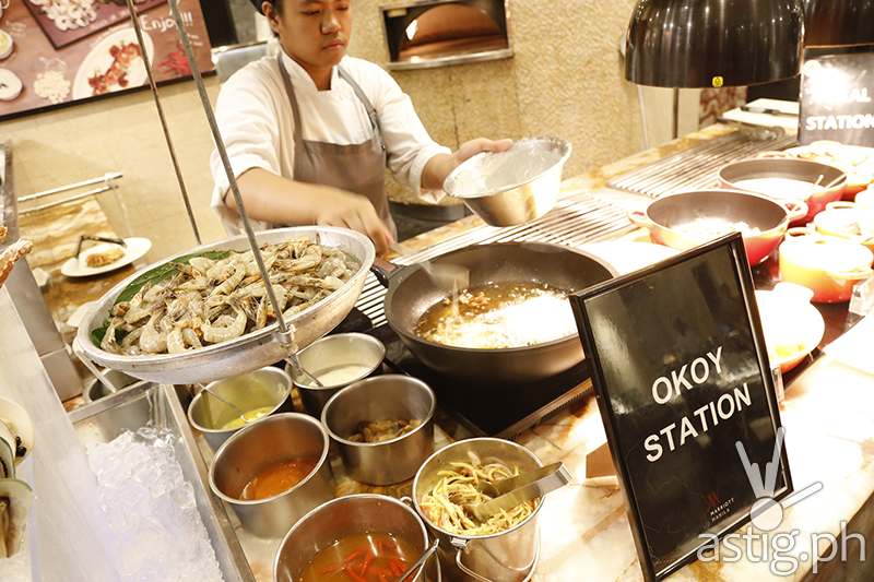 Listen to the shucking of seashells and hear it sizzle. If it’s music to your ears, soon, it will be a fiesta in your taste buds! A few steps on your right are Filipino Appetizers such as Crispy Kangkong, Chicharon Bulaklak, Kwek Kwek, Lumpiang Shanghai, Atchara, and Tokwa’t Baboy. Check out the Local Favorites which include Beef Kaldereta, Adobong Manok sa Gata, Relyenong Bangus, and Chopsuey. These viands are perfectly paired with Pinasingaw na Kanin or Kanin sa Ginisang Bagoong. For Chicken Inasal and Lechon Pork Belly, go to the Roasting Station. At the Grill Station, you will find Pork Gizzard Skewers, Chicken Gizzard Skewers, and Pork Belly Skewers. To add to the heady flavors of Filipino food, Marriott Café also has a Live Okoy Station and a Kare-Kare Station. Dip your crispy baby shrimp fritters in spiced vinegar, garlic soy sauce, and sweet chilli, or have the liberty to choose which ingredients and how many of these you want to add in your Kare-Kare.