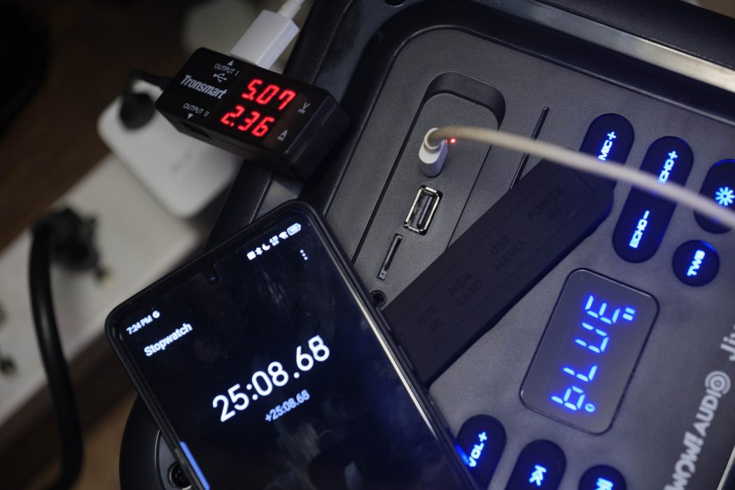 Sure, you can always carry a powerbank, but at this rate, it takes roughly 5-6 hours to fully charge the WOW! Audio JIVE from zero, which honestly feels way too long. We do not want to wait half a day to charge this, so we went ahead and tried a fast charger like the realme SuperDART charger.