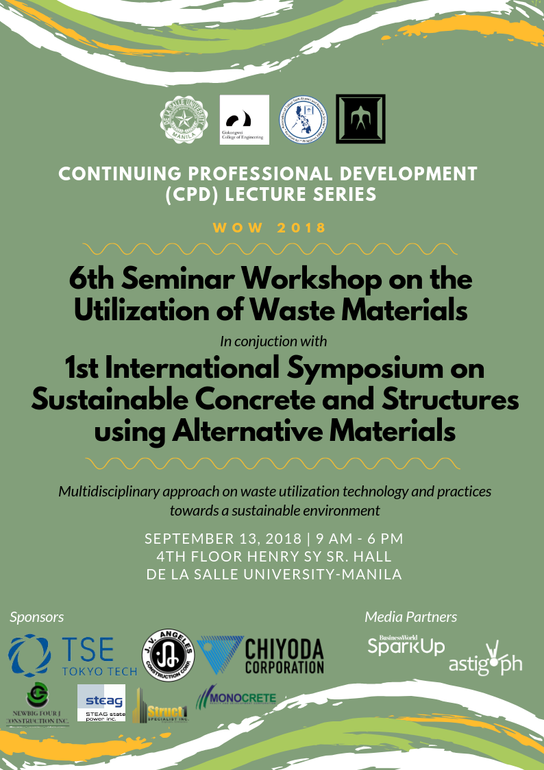 The Civil Engineering Department of the De La Salle University invites you to be a part of WOW2018: 6th Seminar Workshop on the Utilization of Waste Materials.