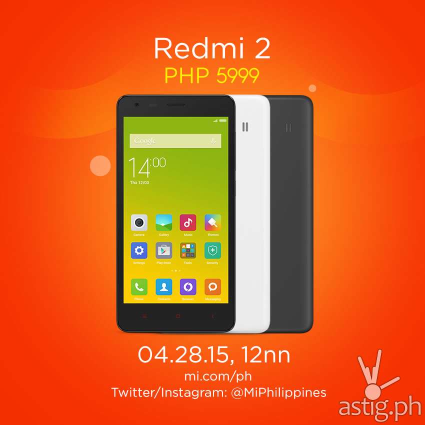 MANILA, Philippines – Xiaomi has announced that its eagerly-awaited Redmi 2 smartphone will soon be available in the Philippines. Priced at ₱5,999, the Redmi 2 will first go on sale on April 28.