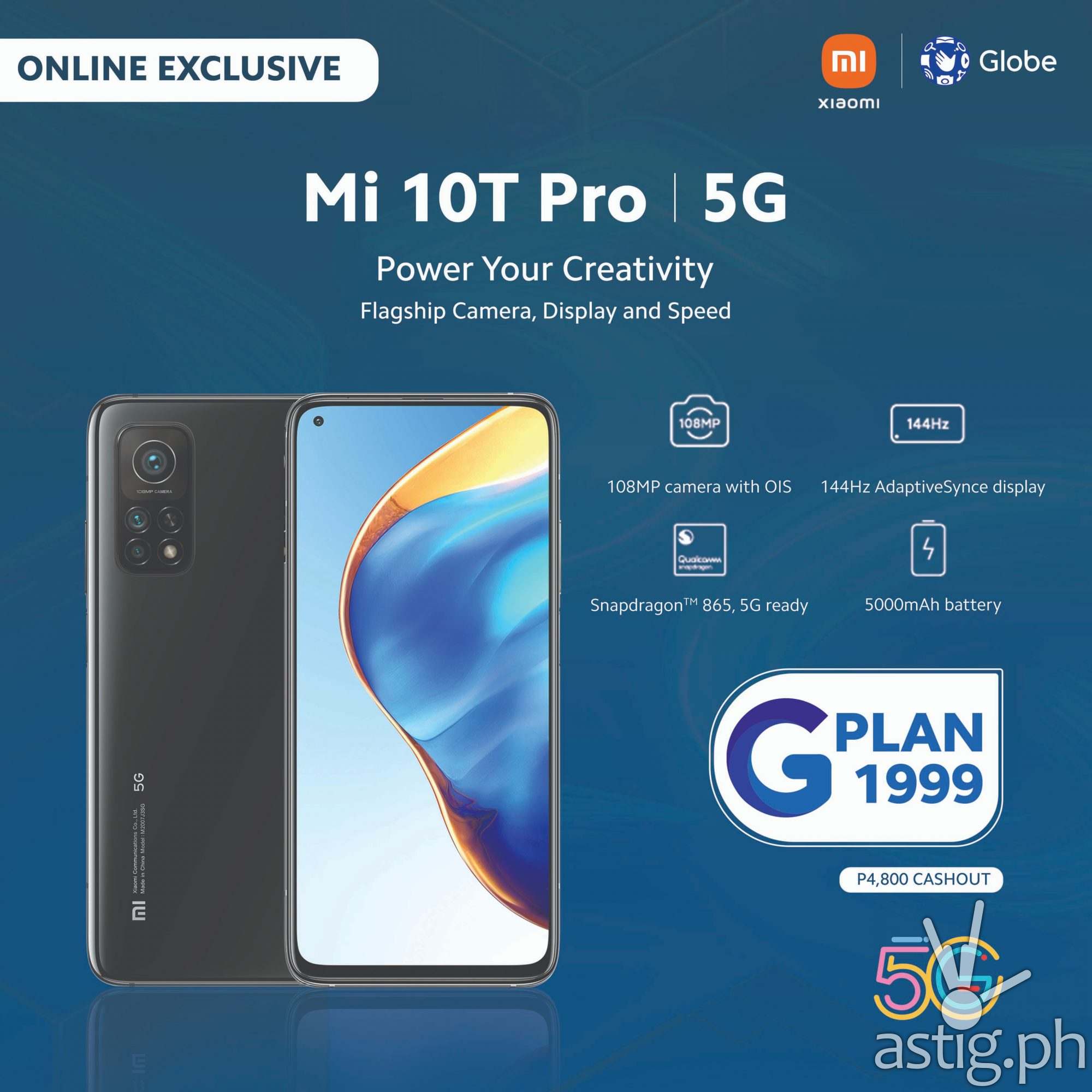 The global technology leader has partnered with Globe Postpaid for the online-exclusive availability of the Xiaomi Mi 10T Pro 5G, a next-level smartphone that would power your creativity. New and existing customers can get this device with GPlan 1999 with a one-time cashout of Php4,800.