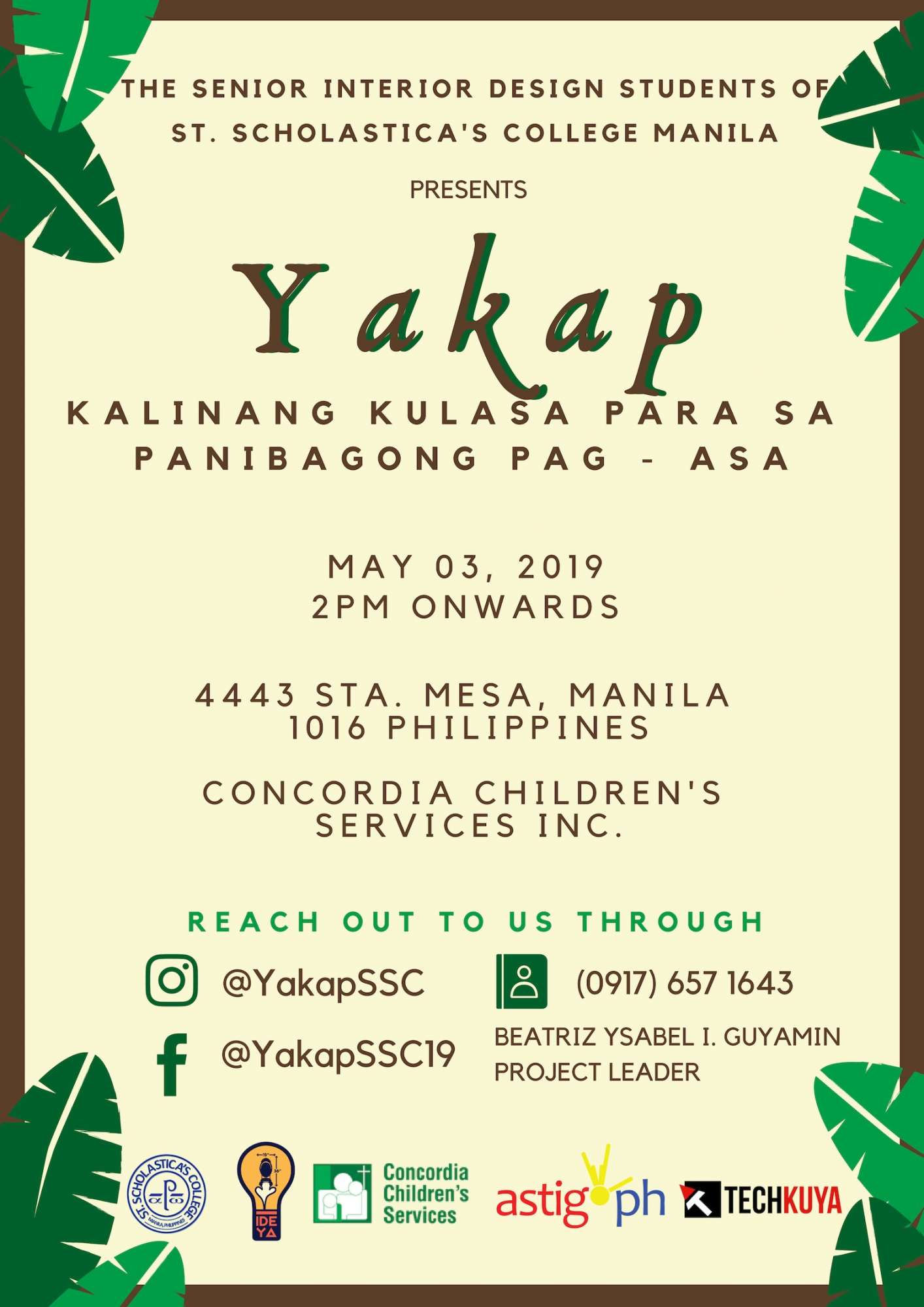 The Fourth year Interior Design students of St. Scholastica’s College, Manila will be having an outreach program to give back through project renovation with the theme “Yakap: Kalingang Kulasa Para sa Panibagong Pag – Asa.”